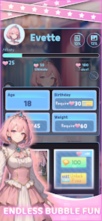 Secret Bubbles - Pop Girl ist ein unterhaltsames Bubble-Shooter-Spiel, das auf Android-Geräten verfügbar ist. In diesem Spiel schießen die Spieler auf langsam fallende Blasen, um verschiedene Aufgaben zu erfüllen und gleichzeitig beliebte Mädchen freizuschalten. Die Kombination aus Geschicklichkeit und Sammelelementen sorgt für ein fesselndes Spielerlebnis. Zusätzlich können Spieler die automatische Schussfunktion aktivieren, um das Gameplay zu erleichtern und dennoch Fortschritte zu erzielen.